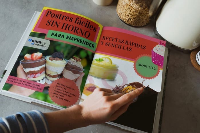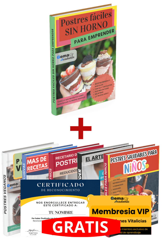 🎨 Con este libro conocerás los secretos para crear tu negocio de deliciosos postres sin horno desde la comodidad de tu casa, ahorrándote entre 300 a 500 dólares que cuesta un curso presencial.
