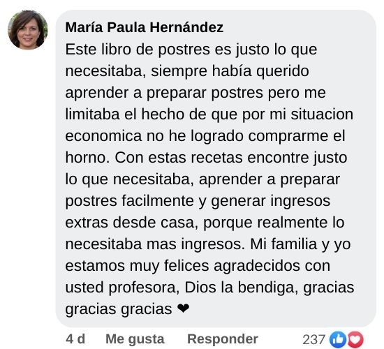 Gracias a su profundo conocimiento en repostería y su amor por la cocina, María Alejandra ha ayudado a miles de personas a iniciar su propio negocio rentable desde casa.